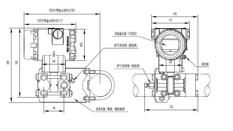 When equipped with LCD display and fluororubber sealing ring, -20~65 ℃