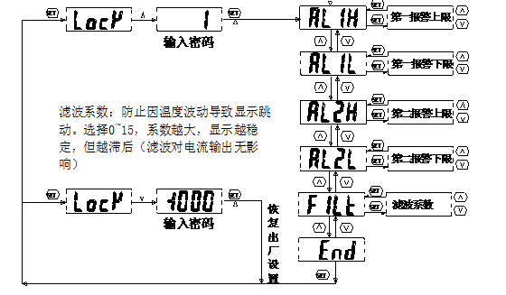 Press the ▲ or ▼ keys to scroll up or down for menu selection (AL1H, AL1L, AL2H, AL2L, END)