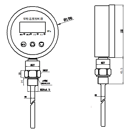 The BXY65M10W-4 series temperature transmission controller is an intelligent digital temperature measurement and control product that integrates temperature measurement, display, output, and control. This product is a fully electronic structure, with a front end equipped with an isolation film filled oil pressure resistance temperature sensor. It is converted by high-precision A/D, processed by a microprocessor, displayed on site, and outputs one analog signal and two switching signals.